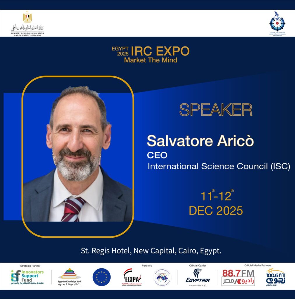 كما يشارك د. Salvatore Aricò، الرئيس التنفيذي للمجلس الدولي للعلوم (ISC) ، وهو أحد أهم الخبراء الدوليين في تقاطع العلم بالسياسات العامة ، بخبرة تمتد لأكثر من ثلاثين عامًا في الأمم المتحدة واليونسكو . ويقدّم خلال المعرض كلمة رئيسية بعنوان Technology Transfer in the Digital Age تستعرض مستقبل نقل التكنولوجيا وتحدياته في عصر التحول الرقمي .