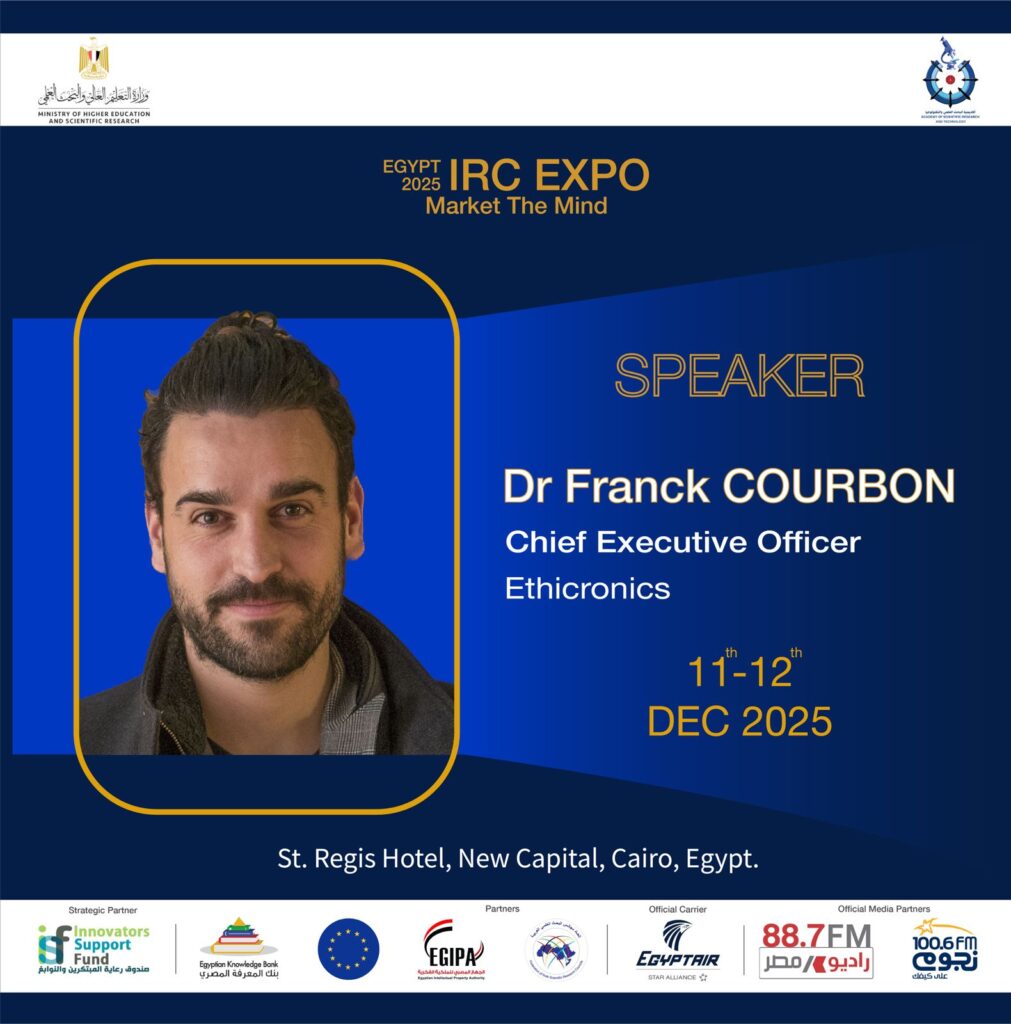 وينضم إلى قائمة المتحدثين د. Franck Courbon ، الرئيس التنفيذي لشركة Ethicronics وأحد أبرز المؤثرين في مجال الـ Deep-Tech والأمن السيبراني في المملكة المتحدة . بعد سبع سنوات من البحث بجامعة كامبريدج وجمع مليون جنيه إسترليني لتمويل مشروعاته ، يقود كوربون فريقًا عالميًا يعمل على ابتكار حلول تكنولوجية عابرة للحدود ، وسيقدّم ورشة عمل متخصصة بعنوان Cross-Border Technology Transfer Mechanisms .