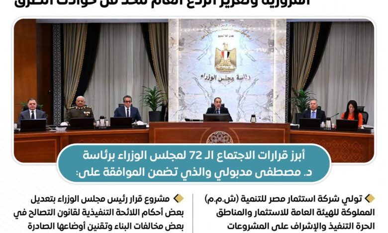 في اجتماع مجلس الوزراء اليوم: لسنة 1973 لتغليظ العقوبات لبعض الجرائم المرورية وتعزيز الردع العام للحد من حوادث الطرق