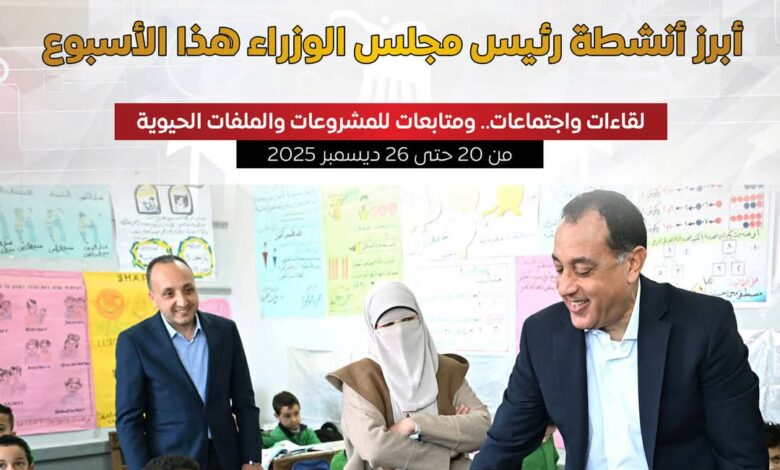المركز الإعلامي لمجلس الوزراء يستعرض بالإنفوجراف أبرز أنشطة رئيس مجلس الوزراء هذا الأسبوع