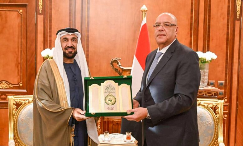 وأعرب “اليماحي” عن تقدير البرلمان العربي لدور جمهورية مصر العربية تحت قيادة فخامة الرئيس عبدالفتاح السيسي ، في دعم وتيسير أعمال البرلمان العربي وتقديم كافة التسهيلات اللازمة للقيام بدوره على أكمل وجه . كما أشاد بالتجربة البرلمانية المصرية الرائدة والعريقة والتي يزيد عمرها عن أكثر من قرن ونصف من العمل الوطني الجاد والمخلص .