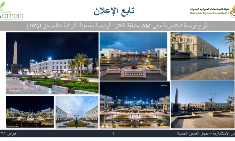 أعلن الدكتور مهندس محمد خلف الله، رئيس جهاز مدينة العلمين الجديدة والمشرف على جهاز القرى السياحية، عن طرح فرصة استثمارية متميزة تُعد من أبرز الفرص السياحية والاستثمارية بالمدينة، وذلك لإقامة BOUTIQUE HOTEL بمبنى AM داخل المدينة التراثية منطقة البلازا بنظام حق الانتفاع، في موقع استراتيجي يجمع بين الطابع التاريخي الراقي والموقع الحيوي الجاذب للزوار.