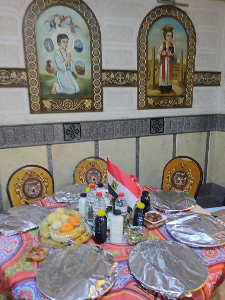 كما شارك عشرات الخدام داخل الكنيسة في تجهيز القاعة الرئيسية ورص الطاولات وإعداد مائدة الإفطار، في تقليد سنوي اعتادوا تنظيمه خلال شهر رمضان، بينما شارك الآباء الكهنة في إعداد الطعام وتقديمه للحضور.