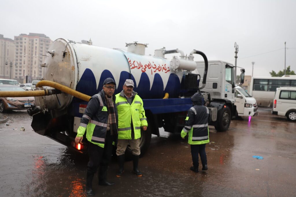 كثفت شركة الصرف الصحي بالإسكندرية، جهودها للتعامل مع آثار النوة الحالية، حيث تعمل فرق الطوارئ على كسح وشفط مياه الأمطار والتعامل الفوري مع أي تجمعات مائية ظهرت داخل الموقف الجديدة غرب المحافظة.