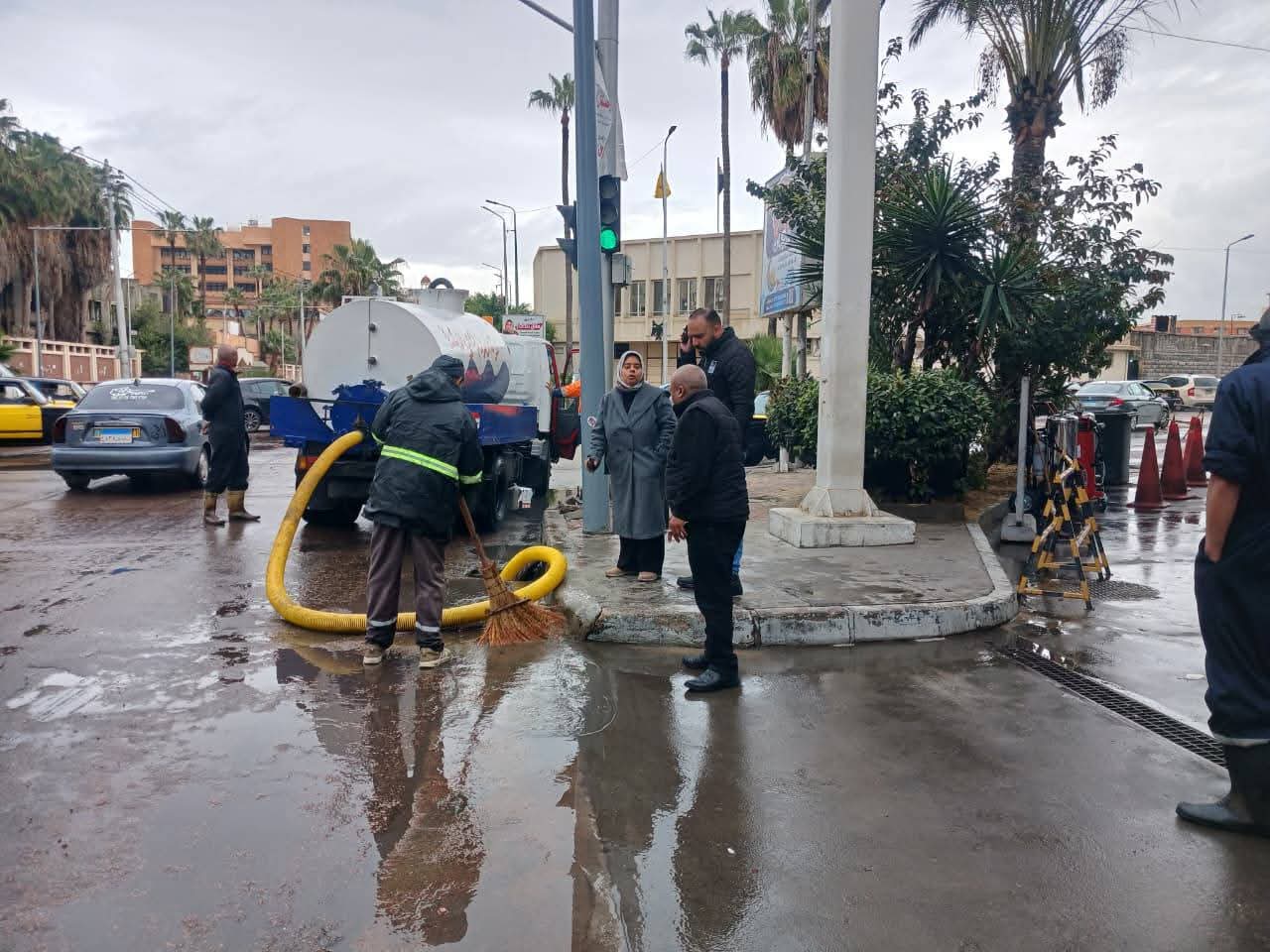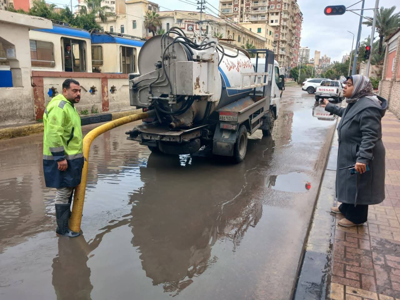 كما امتدت عمليات سحب المياه لتشمل شوارع: (الإبراهيمية، عمر لطفي، السلطان حسين، والنبي دانيال)، بالإضافة إلى تأمين أنفاق الكورنيش من أي تراكمات للمياه.