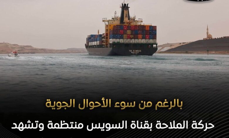 المجرى الملاحي في أصعب الظروف المناخية في ظل ما تمتلكه من أنظمة تكنولوجية متطورة لمراقبة الملاحة، وكفاءات وخبرات متميزة في مختلف مجالات العمل البحري، لم تتأثر حركة الملاحة بقناة السويس بسوء الأحوال الجوية، حيث شهدت اليوم الأربعاء، عبور 39 سفينة من الاتجاهين بإجمالي حمولات صافية قدرها 1.6مليون طن.