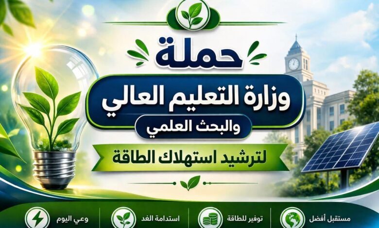 أطلقت وزارة التعليم العالي والبحث العلمي حملة وطنية موسعة تحت شعار «وفرها… تنورها»، بمشاركة فاعلة من الشباب الجامعي تحت رعاية الدكتور عبدالعزيز قنصوة وزير التعليم العالي والبحث العلمي ، تهدف إلى ترشيد استهلاك الطاقة داخل الصروح الأكاديمية والمجتمع.