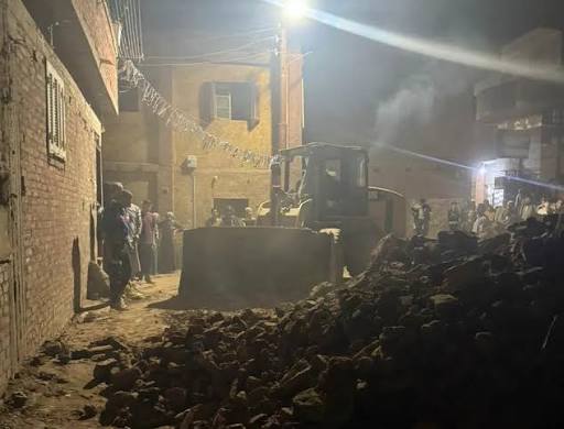 وتم اتخاذ الإجراءات الفورية برفع آثار الهدم من الطريق العام وفرض كردونًا امنيًا لتيسير حركة المرور وحفاظًا على سلامه المواطنين