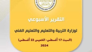 التقرير الأسبوعي لوزارة التربية والتعليم والتعليم الفني (السبت 17 أغسطس – الخميس 22 أغسطس 2024